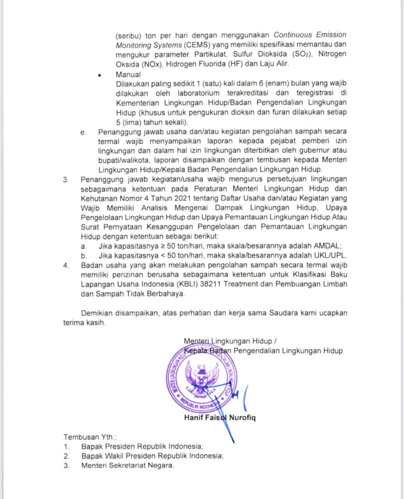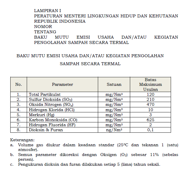 Berdasarkan arahan Menteri LHK, insinerator tidak dilarang selama memenuhi regulasi, yaitu: