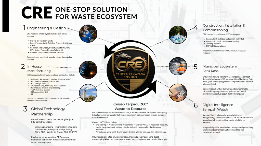 Transformasi sebuah proyek dimulai dari kualitas perencanaannya. Di CRE, kami percaya bahwa rekayasa yang presisi bukan sekadar layanan teknis—tetapi fondasi bagi masa depan pengelolaan limbah yang lebih bersih, aman, dan berkelanjutan.