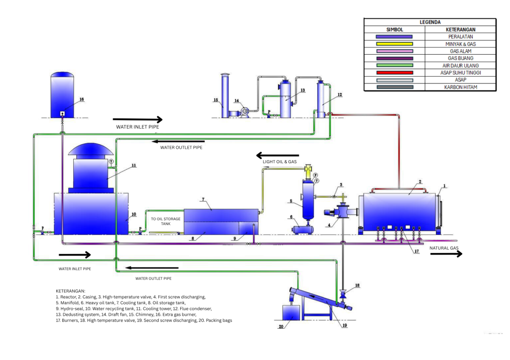 PT Centra Rekayasa Enviro menghadirkan teknologi konversi limbah cair dan semi-padat menjadi bahan bakar alternatif melalui kerja sama strategis dengan principal kami, mengacu pada sistem yang telah digunakan secara global. Teknologi ini memproses oil sludge, used lubricants, serta pyrolysis RDF oil menjadi non-standard diesel dan bahan bakar industri lainnya.
