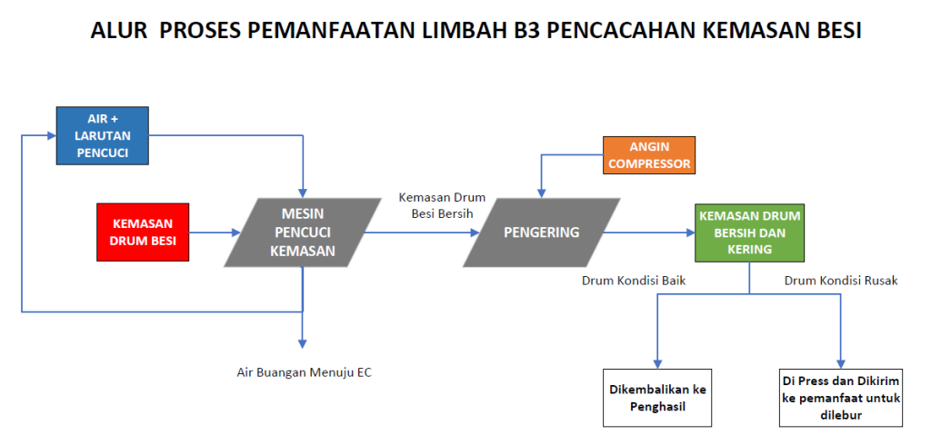 Sistem ini dikembangkan untuk menangani berbagai jenis kemasan terkontaminasi B3 — mulai dari drum besi, jerigen plastik, hingga IBC tank — sekaligus menghasilkan material yang siap direkondisi atau didaur ulang melalui proses pencacahan berkapasitas tinggi.